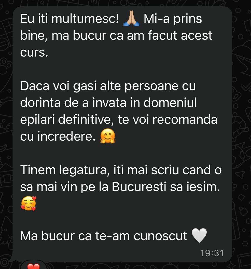 – Simona Ghilință, specialist cu experiență practică în epilare definitivă laser.